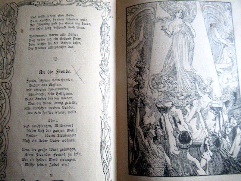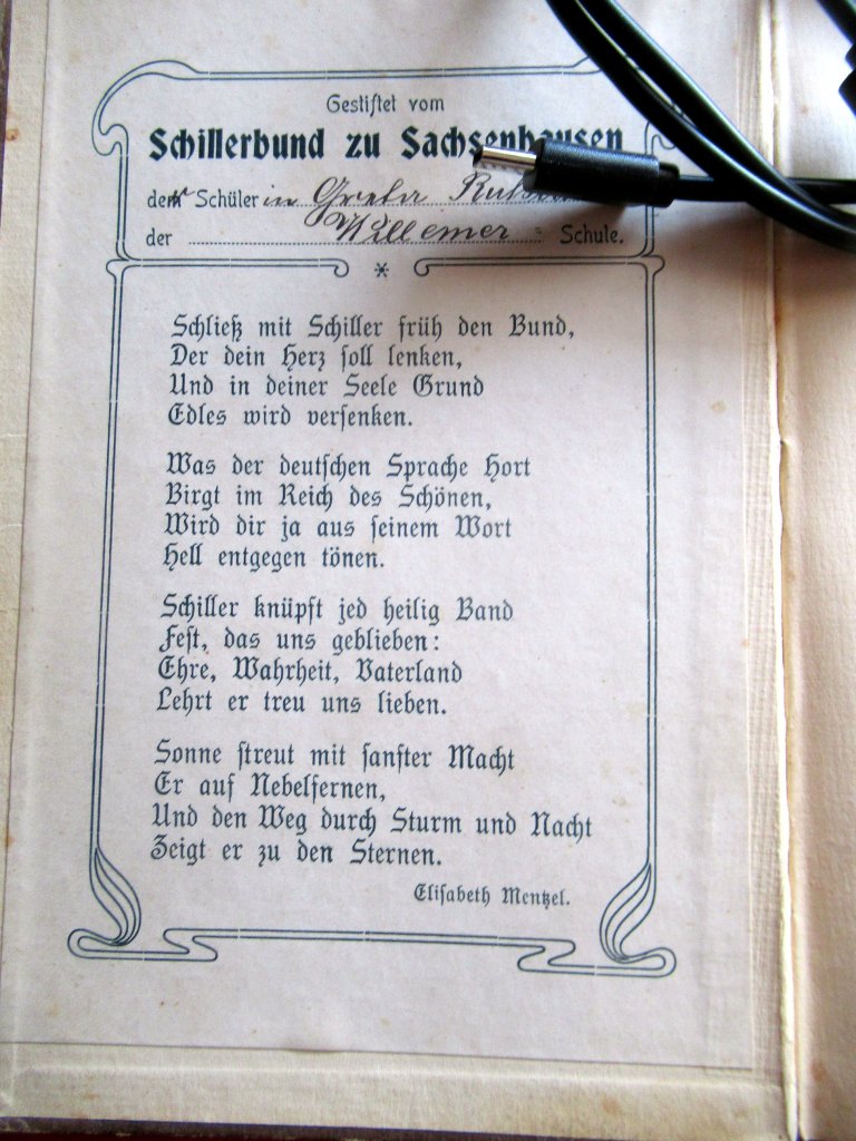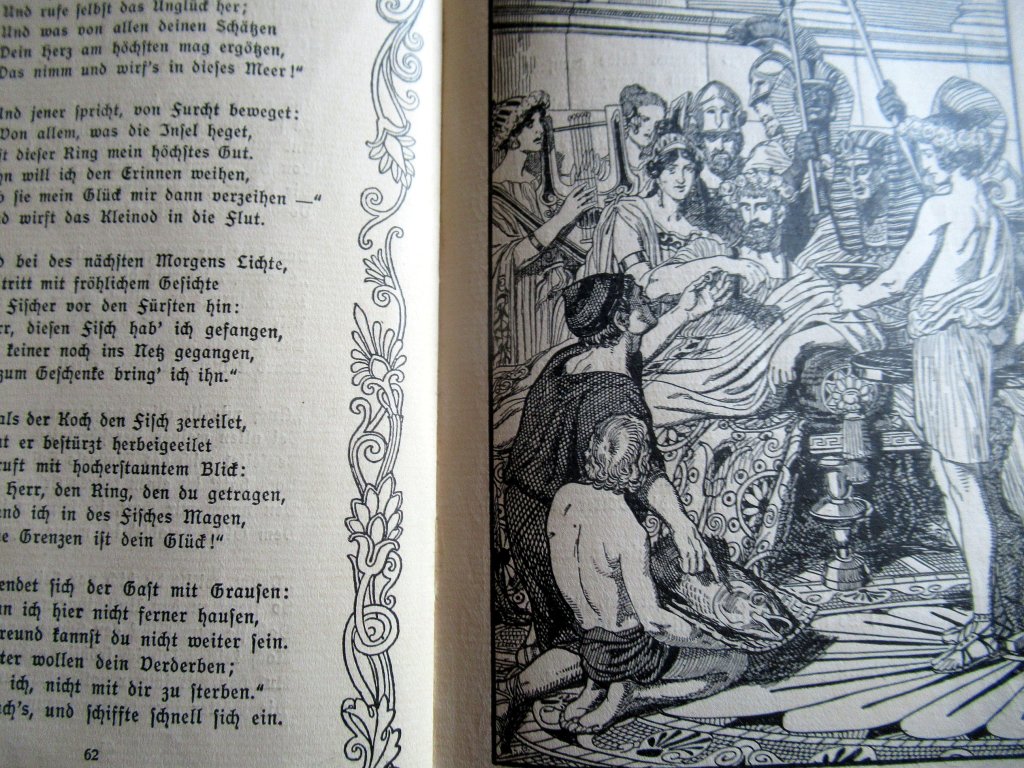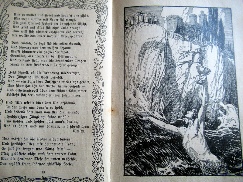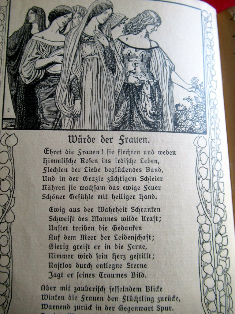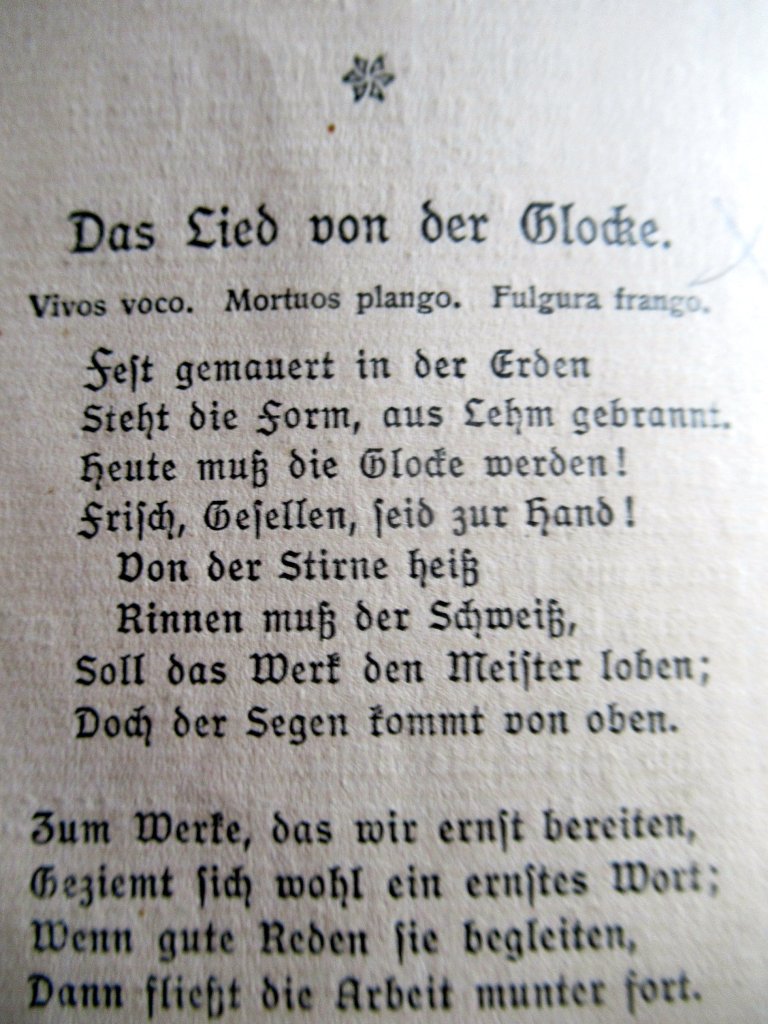 Wunderschön! In dieser deutschen Druckschrift waren auch meine ersten Bücher geschrieben, also Märchenbücher zum Beispiel. Auch mit solch schönen Zeichnungen wuchs ich auf, natürlich mit Schillers „Lied von der Glocke“ usw.