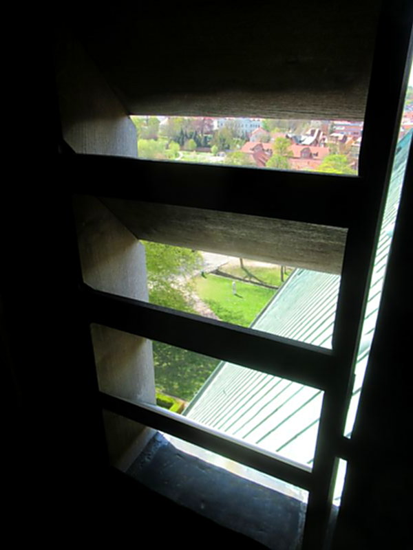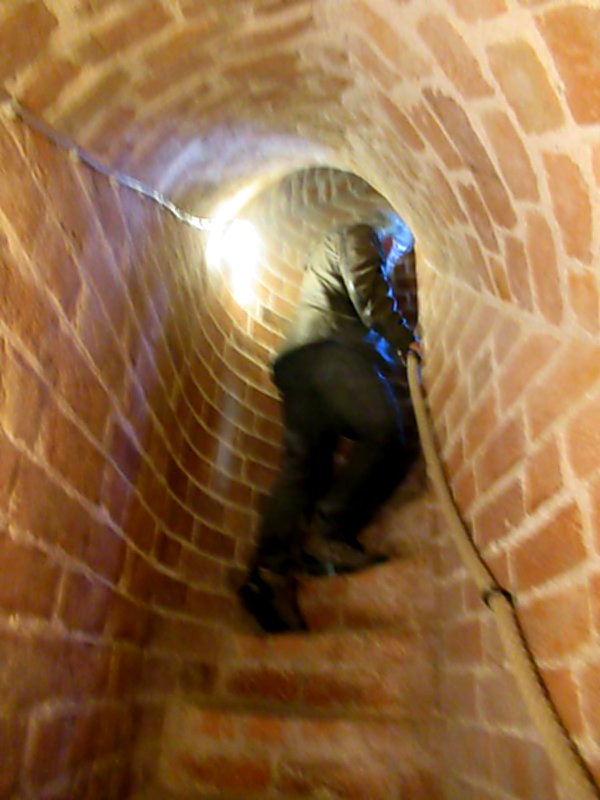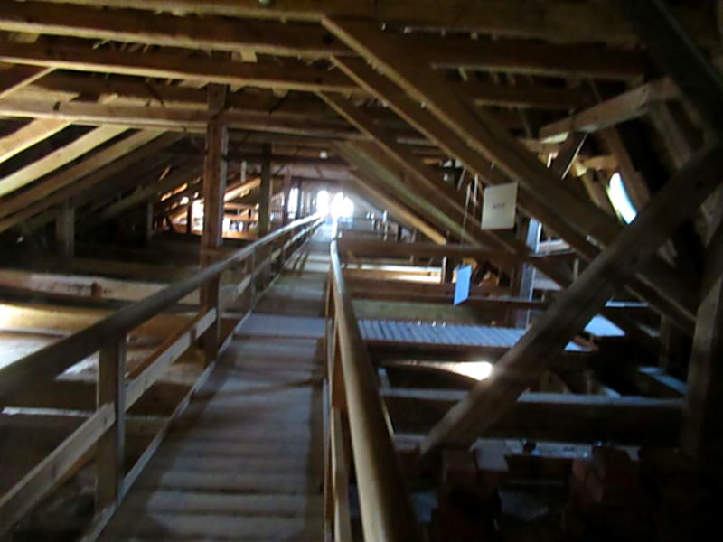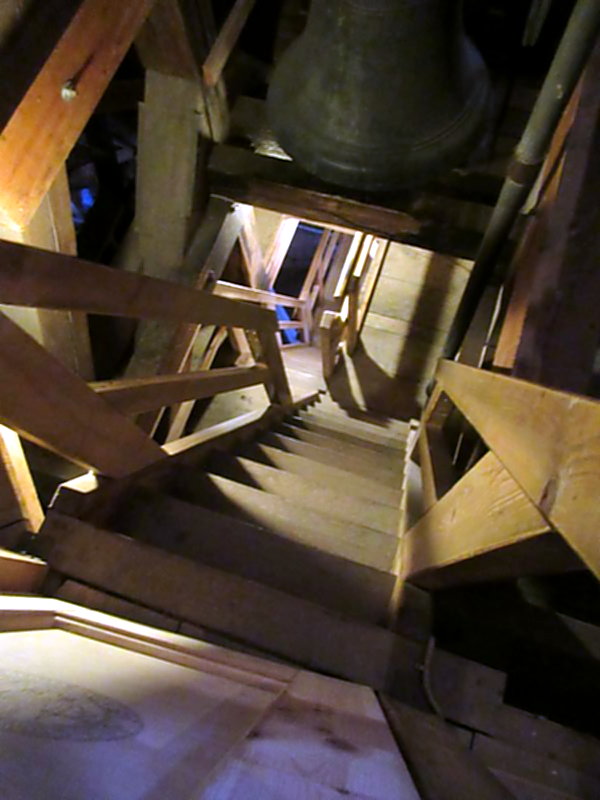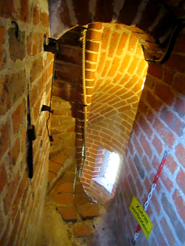 Weil es etwas eng auf den Wendeltreppen zugeht ist eine nicht allzu ausladende Körperfülle von Vorteil. Schwindelfreiheit auch. Schuhgröße 47 (meine) aber wirklich ein Nachteil..